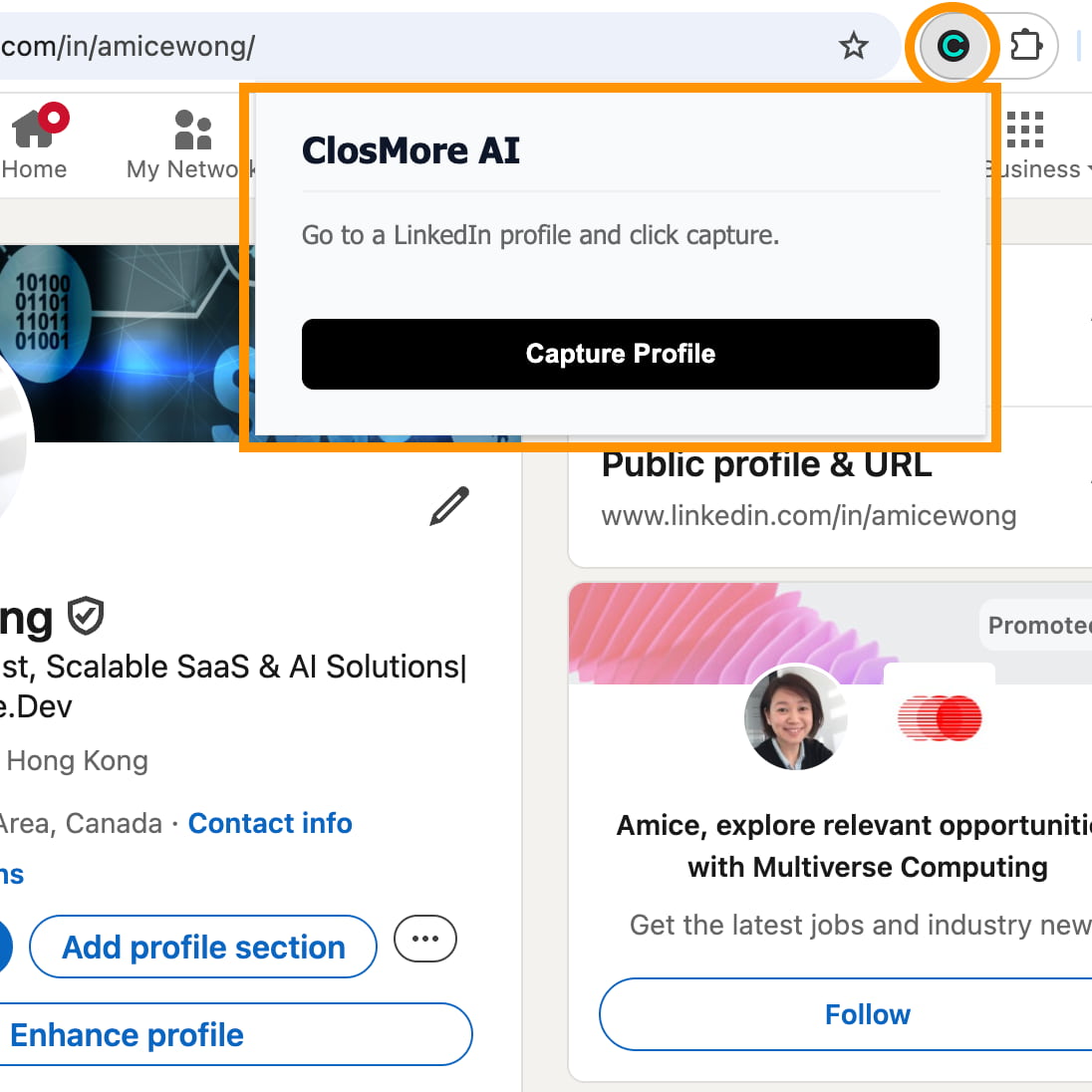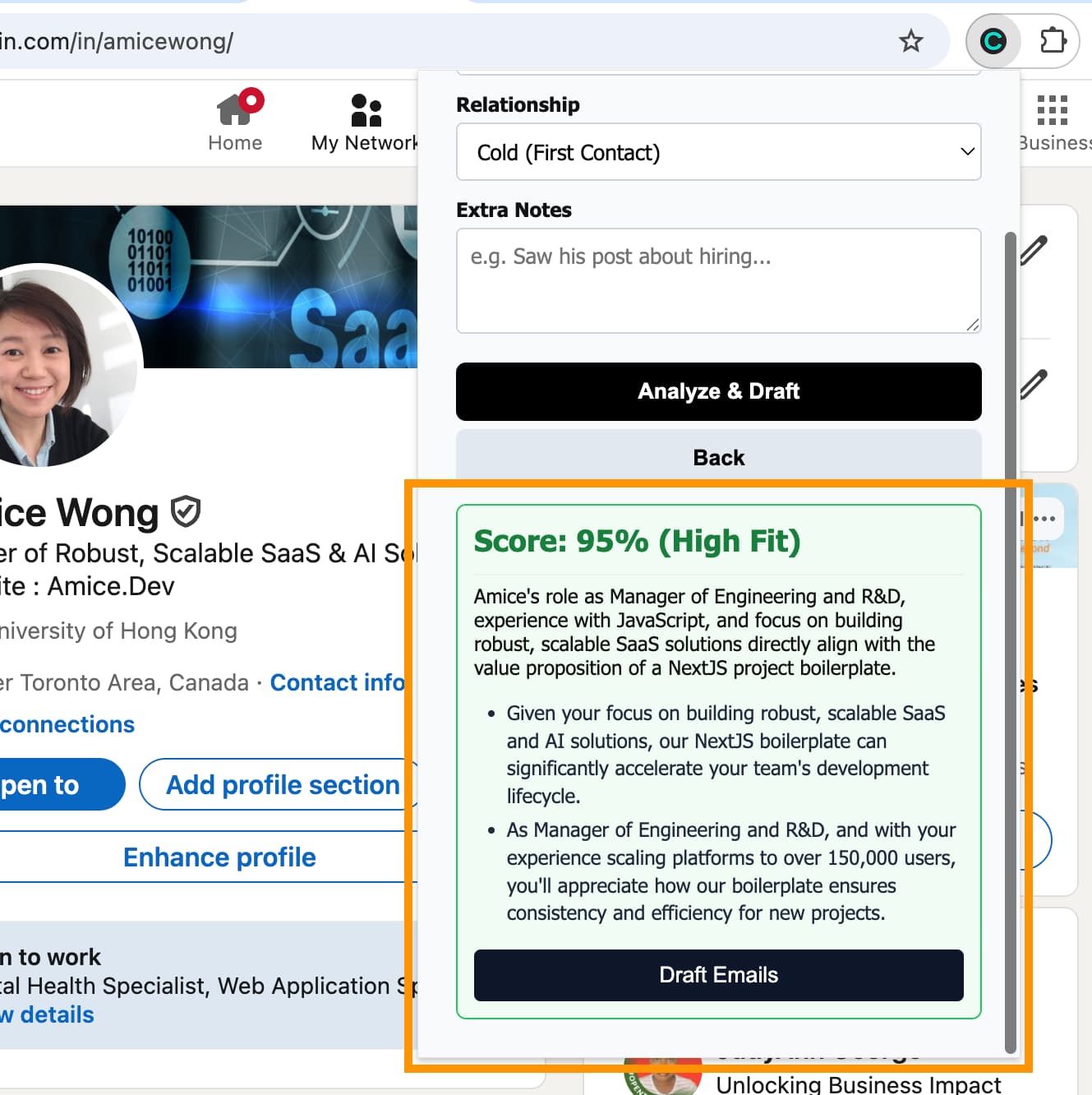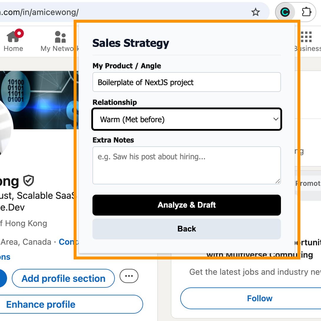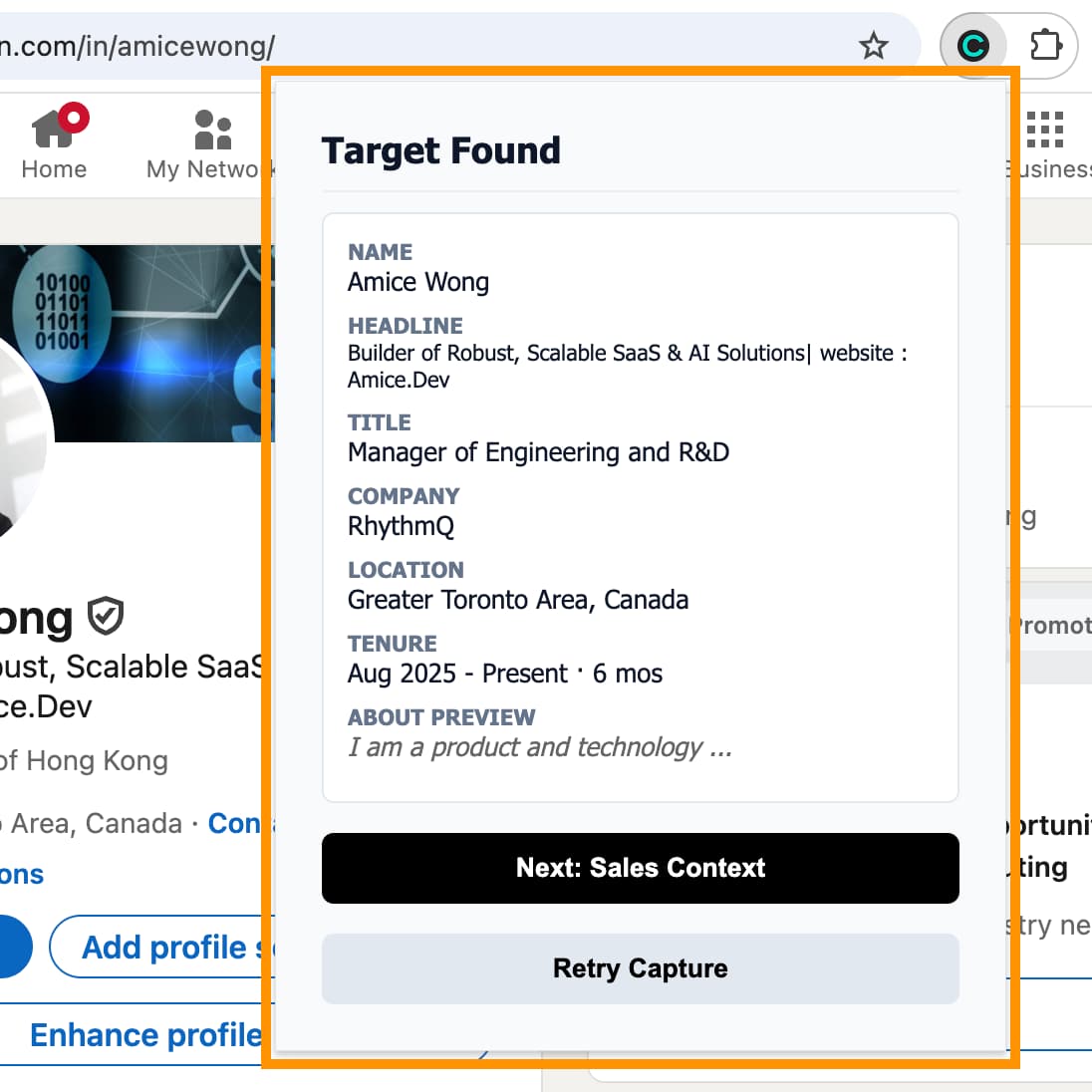 From any LinkedIn profile, the extension pulls: