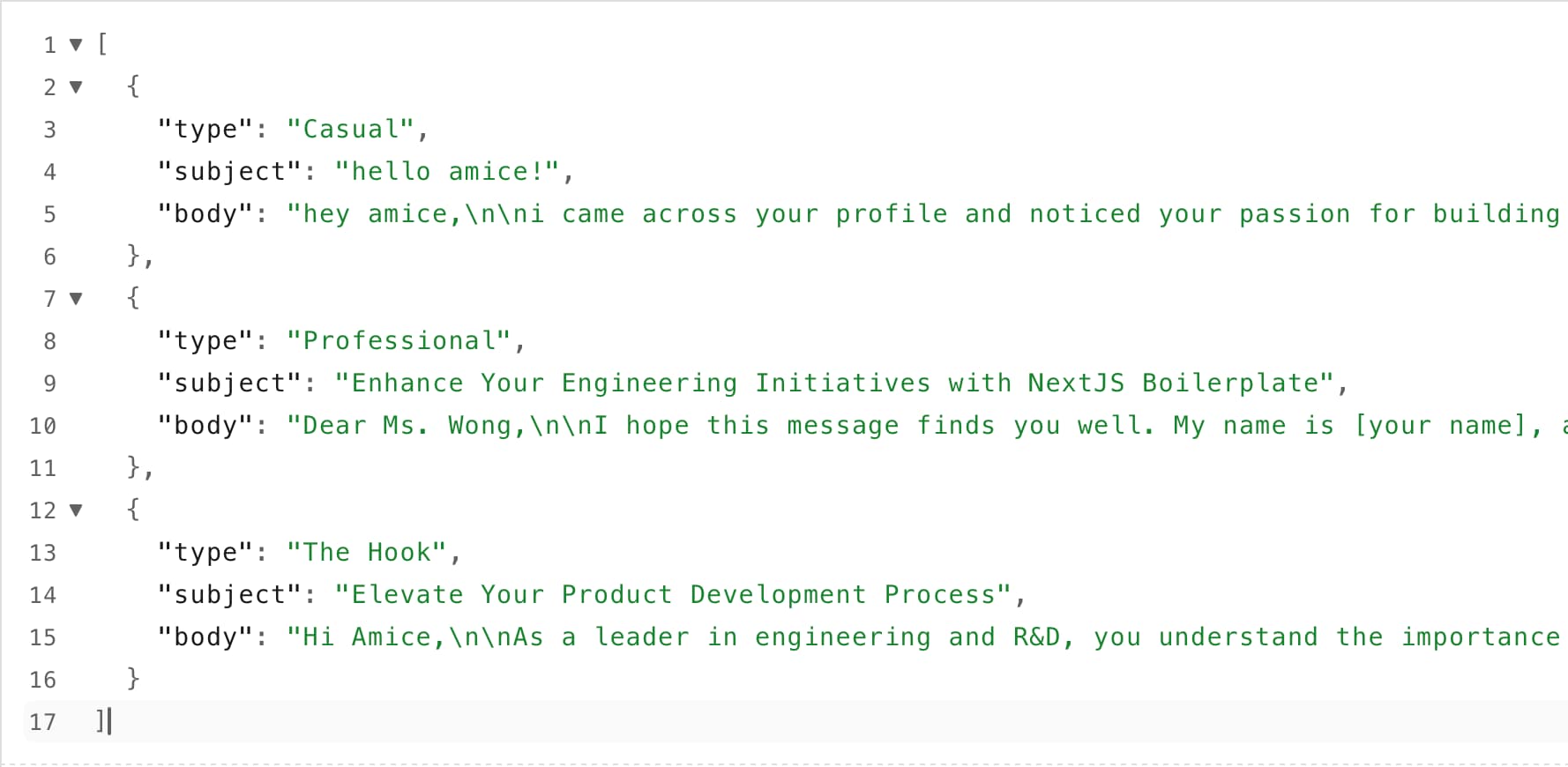 If the user proceeds, the AI generates 3 email options (Casual, Formal, Short). Each one is anchored to the real-world news found in step 3. No "Blank Page" problem.