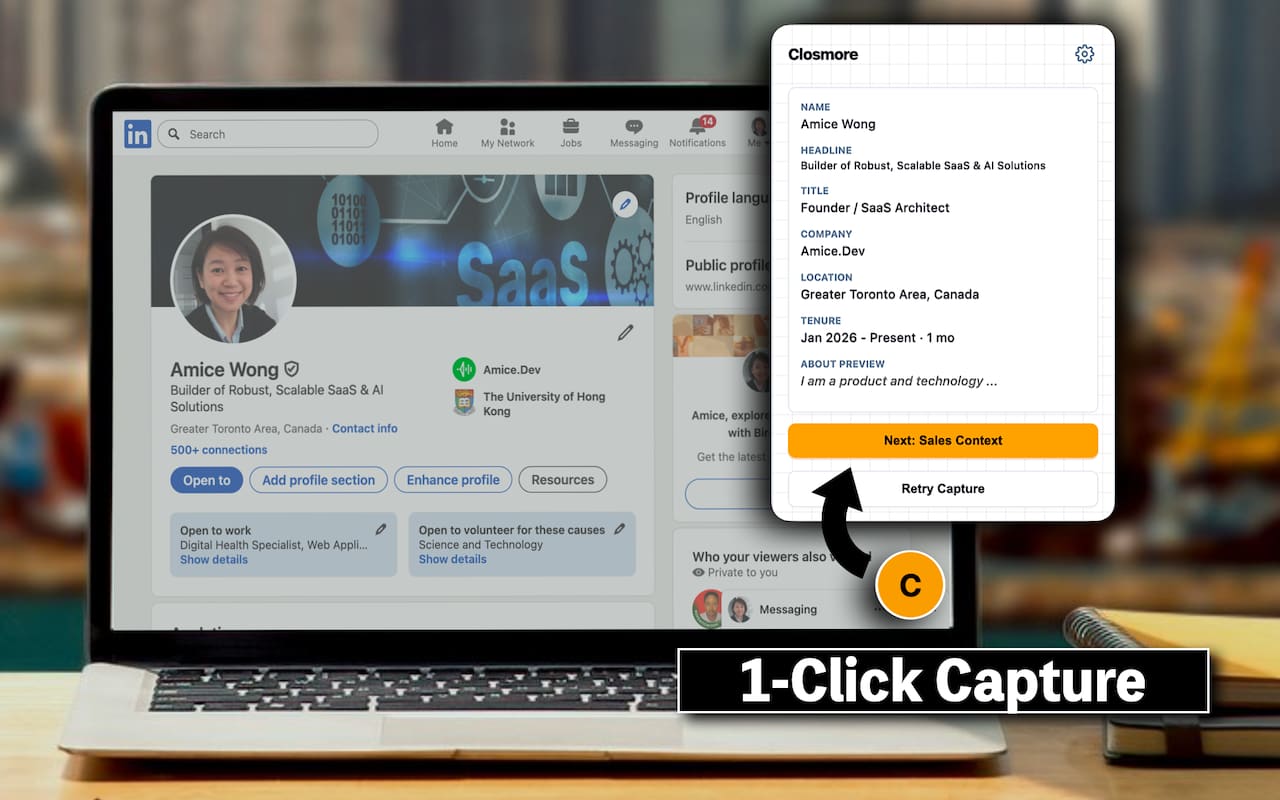 Closmore is always with you to turns LinkedIn profiles into sales opportunities.