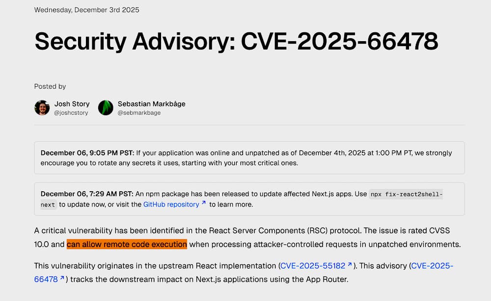 Update your Next.js versions now, and stay safe out there!